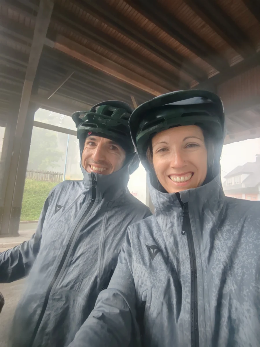 Nada más llegar al valle, sin apenas descanso, empezamos el último ascenso del día: un puerto con 18 curvas de herradura, las 13 primeras prácticamente seguidas. No era el más duro de la etapa, pero tras tantas horas pedaleando bajo la lluvia, cada giro parecía eterno. El agua nos calaba hasta los huesos, y el frío se mezclaba con el cansancio. Pero cuando por fin alcanzamos la cima, a más de 1.200 metros de altitud, una sensación de conquista nos recorrió el cuerpo. Justo entonces, al volver a cruzar a Eslovenia, la lluvia cesó.