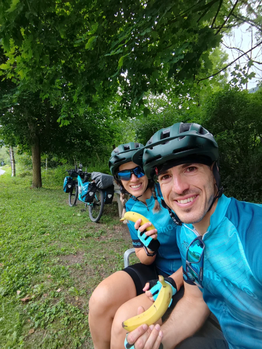 A los 30 kilómetros hicimos una parada en un banco para descansar y reponer fuerzas. Desde allí, vimos pasar a decenas de ciclistas en ambas direcciones: algunos con alforjas, otros sin, unos apretando los dientes y otros apretando el gatillo de su bici eléctrica. Un reflejo perfecto de la diversidad del cicloturismo.