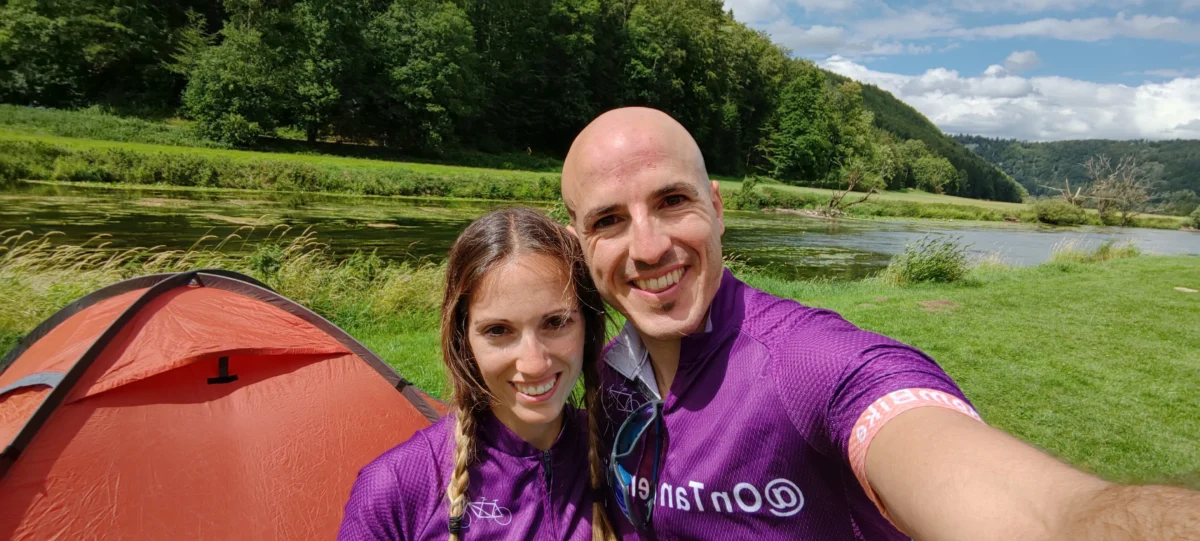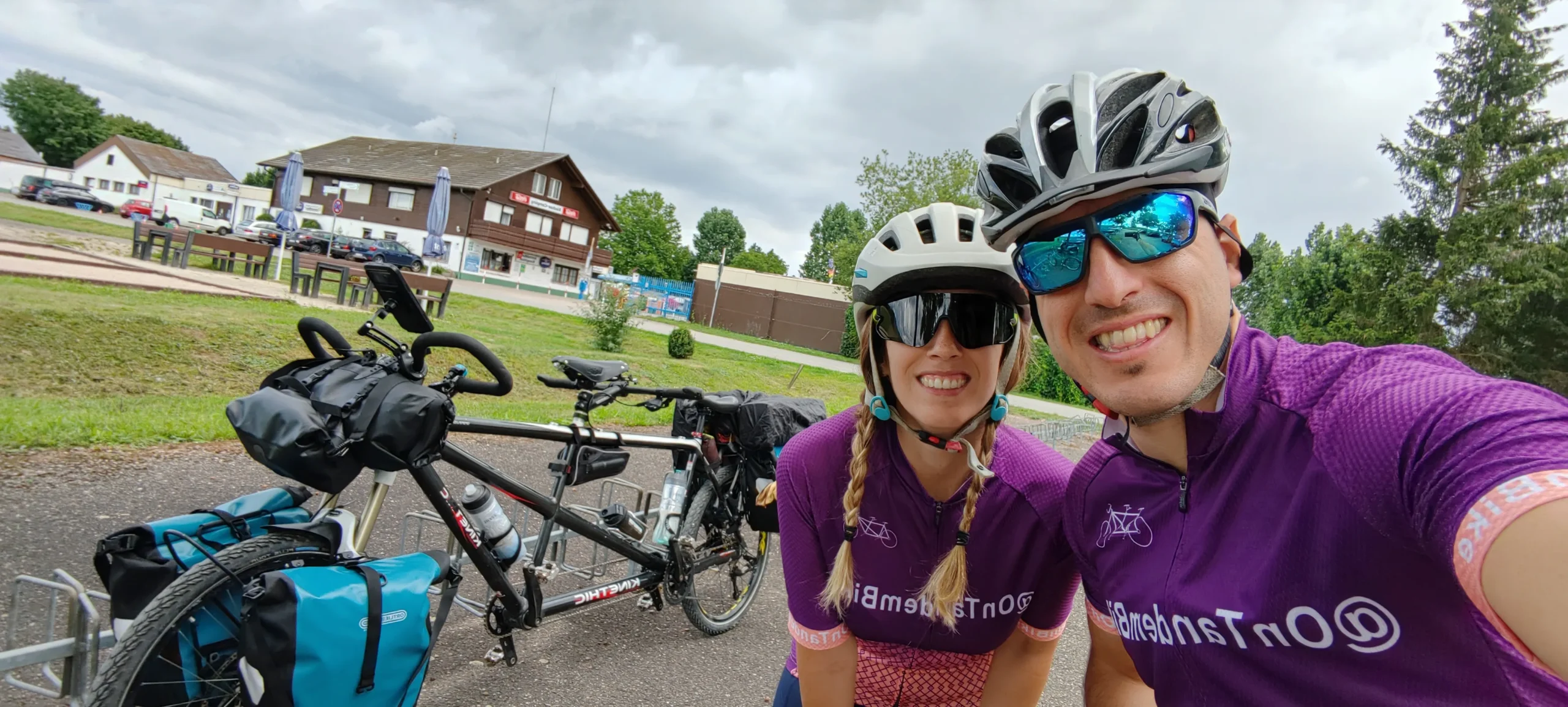 Iniciamos la ruta en Donaueschingen, punto simbólico donde nace el río Danubio, tras haber pasado la noche en un camping a las afueras (Camping Riedsee). Aunque era pleno verano, el termómetro se desplomó por la noche y pasamos bastante frío. Para llegar al punto exacto del nacimiento del Danubio pedaleamos unos kilómetros en sentido inverso, con la emoción de iniciar una gran aventura justo donde el río empieza su largo viaje hacia el mar Negro. Aquellos primeros metros fueron especiales: la sensación de comenzar algo grande se hacía palpable en cada pedalada mientras el viento nos empujaba suavemente a favor.