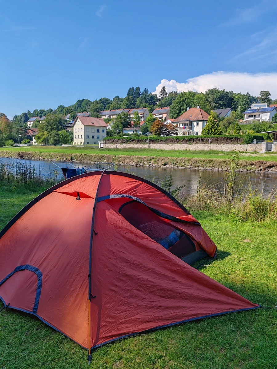 Camping Zeltplatz Passau 30€ (2 personas, 1 tienda). Un camping situado a las afueras de Passau, a orillas del río Ilz, pero lo suficientemente cerca del centro para permitir una visita rápida. Es un espacio funcional y tranquilo, ideal para pernoctar en tienda de campaña, que cuenta además con un pequeño restaurante familiar de trato cercano donde se pueden degustar pizzas caseras. También dispone de un salón a disponibilidad de los huéspedes para resguardarse del frío y la lluvia, donde además ofrecen taquillas con electricidad para poder cargar los dispositivos de forma segura.