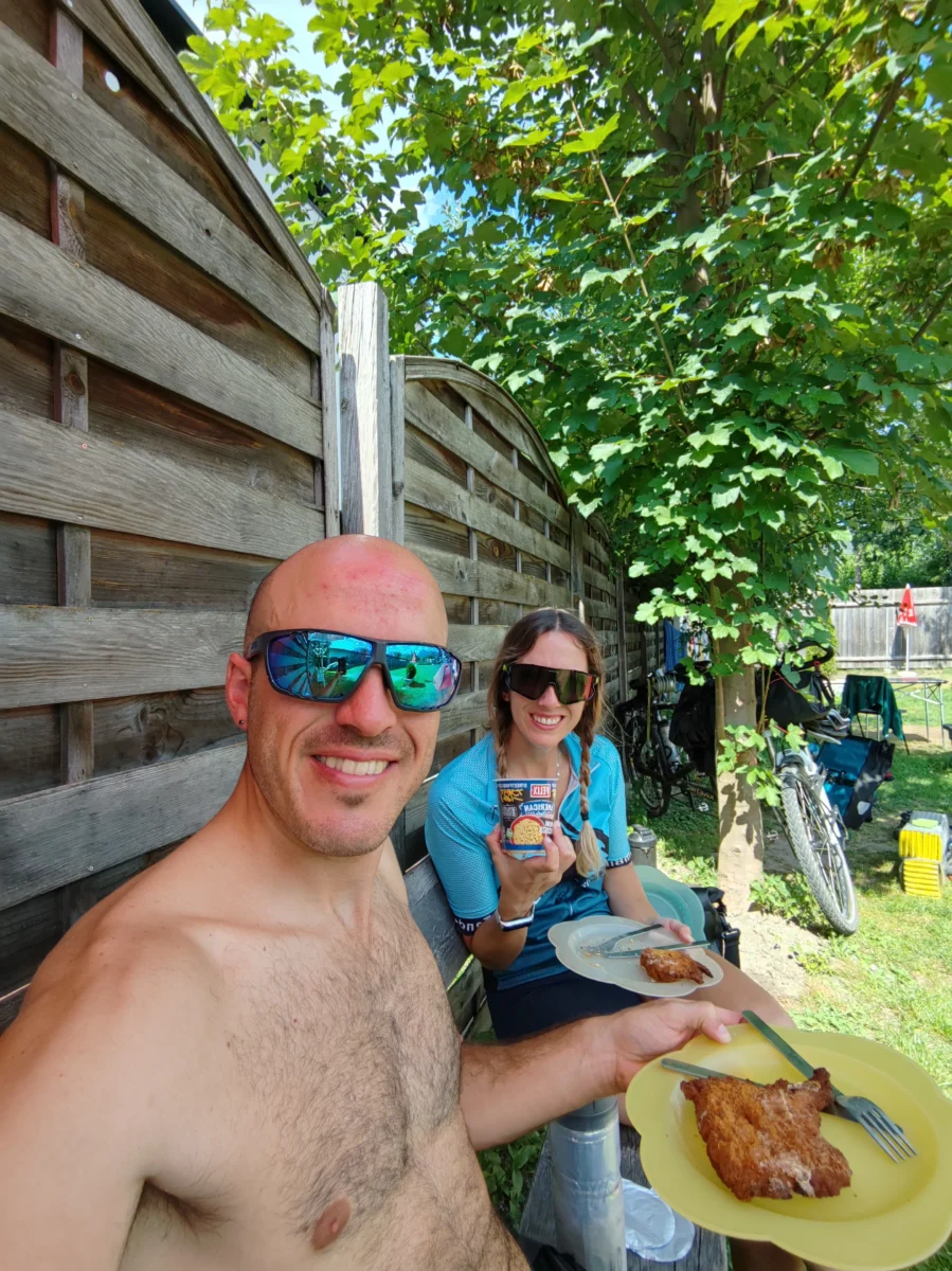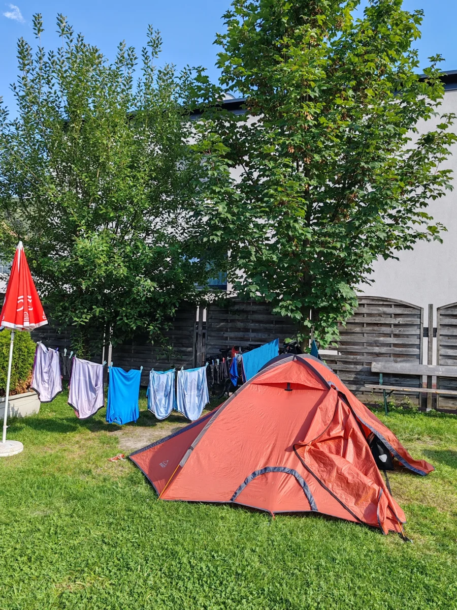 Montamos la tienda en el Campingpark Fink, dejamos las alforjas y fuimos a comprar la comida a un supermercado cercano para comer tranquilamente en el camping. Nos relajamos mientras tomábamos nuestro típico menú: ensaladas, algo de proteína y fruta. Tras una ducha reparadora, paseamos por el pueblo y terminamos la tarde en las mesas del camping echando unas partidas. Comprobamos que la mayoría de los campings de esta zona tienen unas instalaciones estupendas: zonas de estar cerradas, baños impecables y suelos de hierba llanos donde dormimos de maravilla.