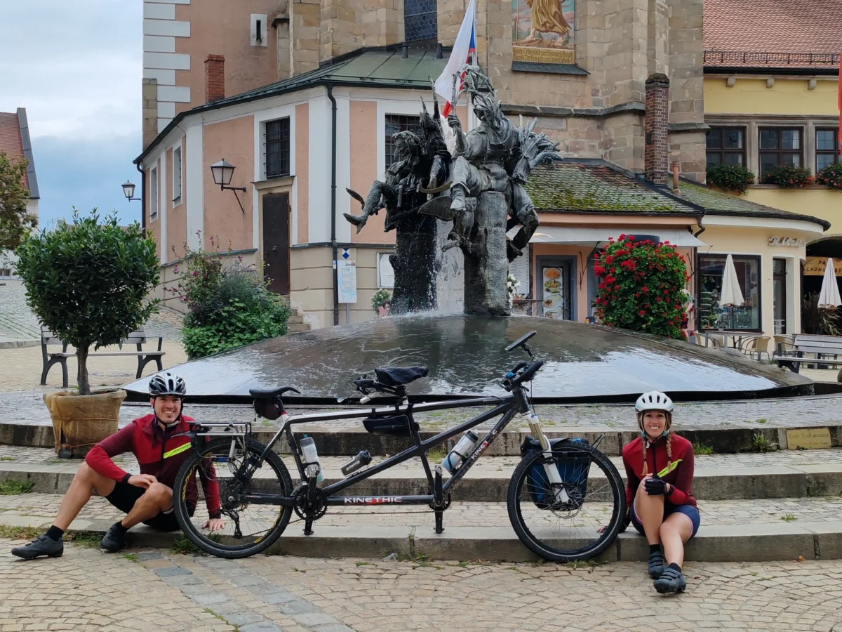 Comenzamos a pedalear sobre las 9:00 h, marcando un punto de inflexión en nuestro viaje: nos despedimos del Danubio por unos días para poner rumbo al norte. Esta etapa fue una verdadera caja de sorpresas y tuvo un poco de todo. Empezamos siguiendo el curso del río Regen con algo de viento en contra, alternando carriles bici, pistas forestales y carreteras prácticamente desérticas que atravesaban bosques frondosos. Fue una jornada exigente pero muy gratificante, donde no faltaron subidas de montaña duras, momentos de lluvia y rachas de viento; una mezcla que, lejos de desanimarnos, ¡disfrutamos muchísimo!