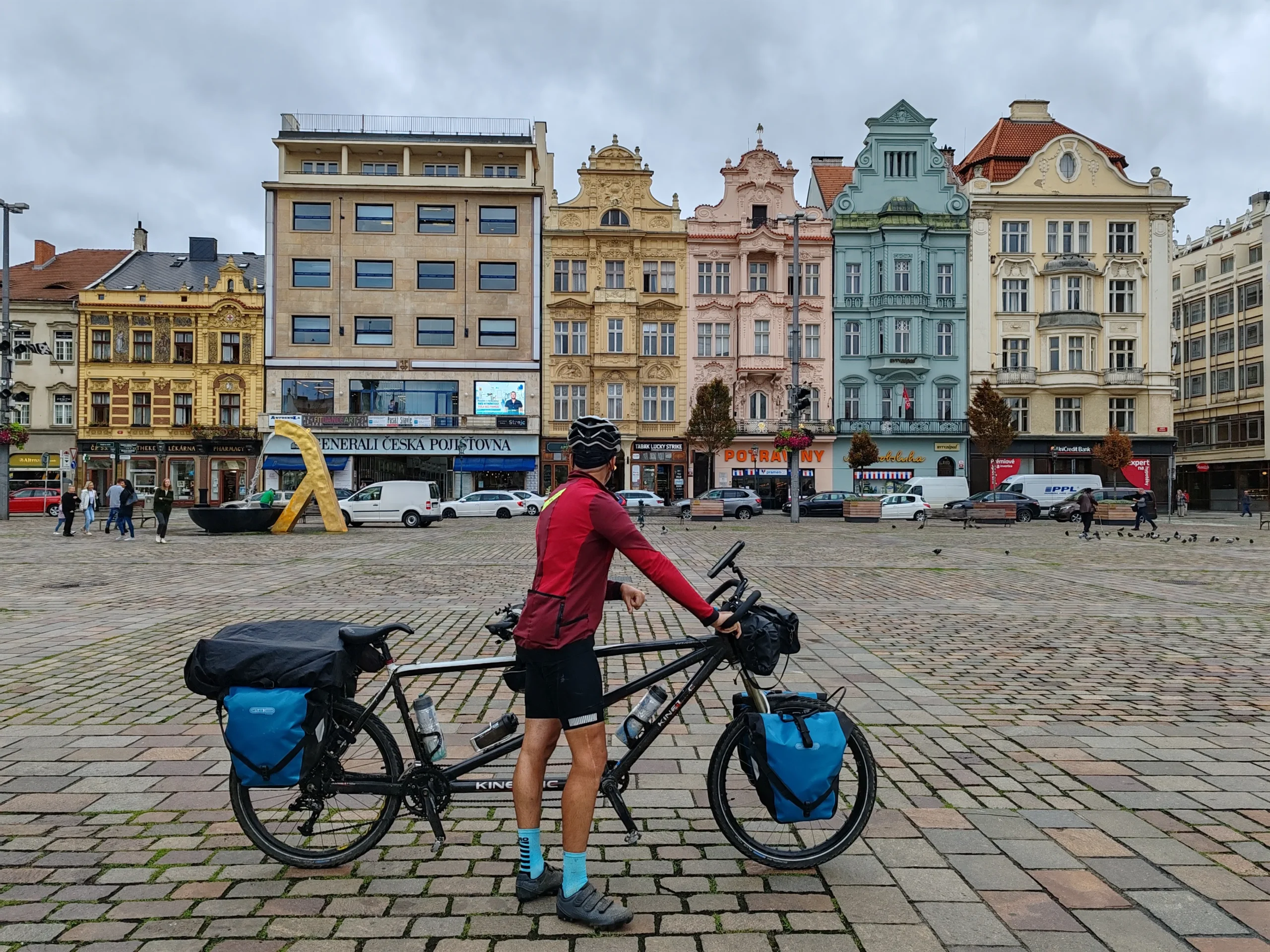 Seguimos en todo momento las marcas amarillas de la red ciclista checa en dirección nordeste, siempre bajo la guía del carril bici número 3, que nos sorprendió gratamente por lo bien señalizado que estaba. A mitad de jornada alcanzamos la bella y fría ciudad de Pilsen. Es justo en la ciudad donde el río Radbuza llega a su fin y desemboca en el río Berounka, que nace precisamente en Pilsen tras la confluencia de varios ríos. Como el termómetro seguía bajo, aprovechamos para refugiarnos en una cafetería y reponer fuerzas antes de continuar.