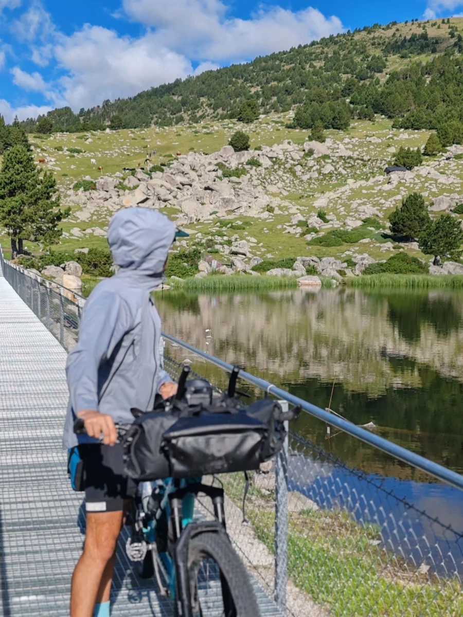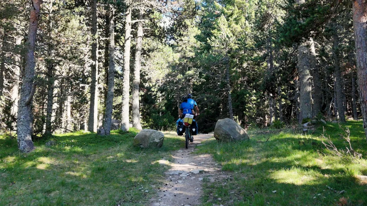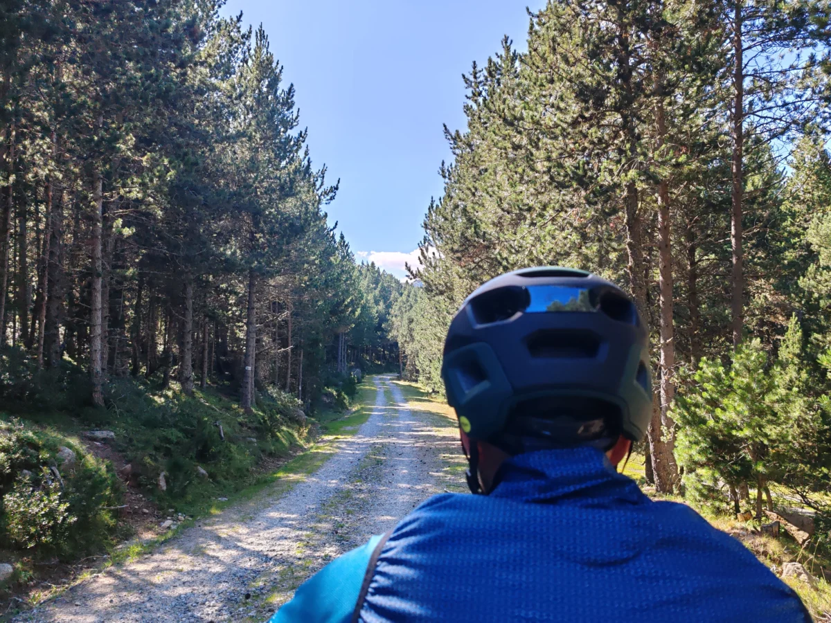 Los siguientes 4 kilómetros hasta la estación de esquí de Lles fueron muy exigentes, pero a partir de ahí todo cambió: entramos en una pista de tierra que continuó ascendiendo un par de kilómetros más y luego suavizó para convertirse en una fascinante pista forestal a más de 2000 metros rodeada de preciosos bosques. La sensación de rodar por esa pista fue mágica y no queríamos que acabara, aunque aún no había llegado lo mejor.