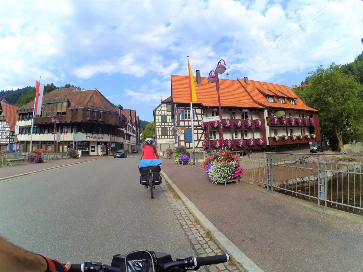 A partir de aquí, el tramo hacia Triberg se hace por carretera. Al principio no hay carril bici, pero aparece a los pocos kilómetros. Con el calor que hacía, decidimos no investigar alternativas y tirar por la vía directa hasta nuestro destino.