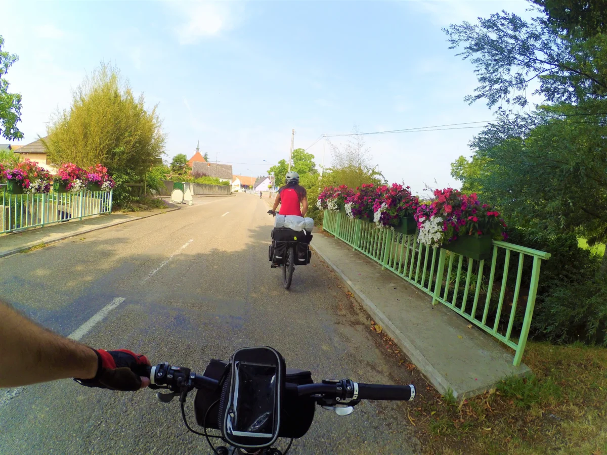 Una vez dejamos atrás las afueras de la ciudad, nos limitamos a seguir el carril bici y las indicaciones hacia los pueblos que conectan con la frontera. Al llegar a Breisach, volvimos a cruzar el Rin, deshaciendo el camino que nos trajo aquí el primer día.